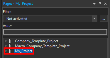 When you are finished selecting the options for creating a new project click on the OK button. Now the project will be created and once the project has been created you can see it in the page navigator.