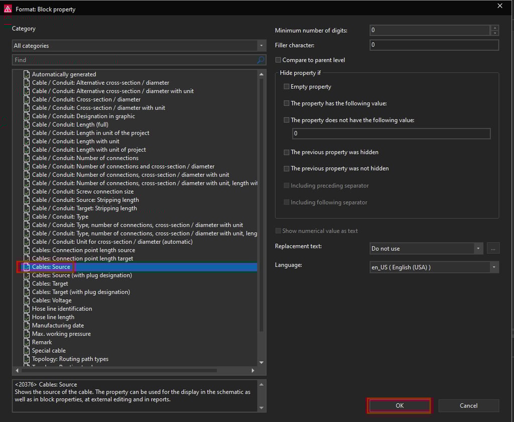 Now a Format: Block property window will open. Locate the Cables: Source property and then click on the OK button.