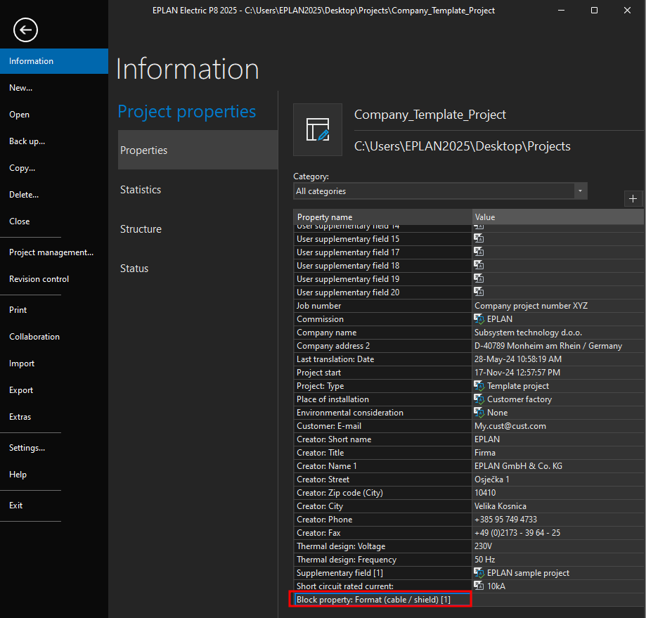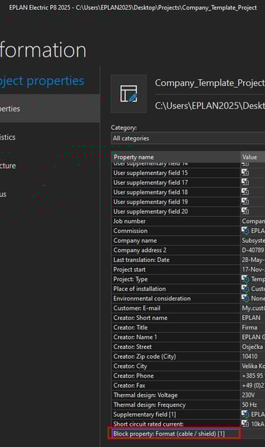 Now you can see that ePLAN added a value in the Value field, this value corresponds to the configuration that we made for this Block property Format.