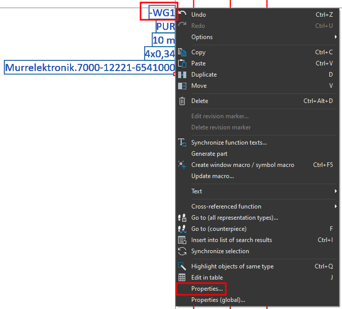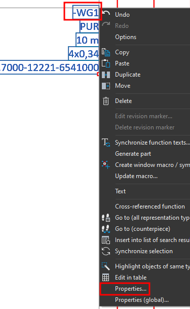 Now we can go to the page where we have a cable connection. In this example we will go to the cable connections between the sensors and terminals and then we will open the cable properties.