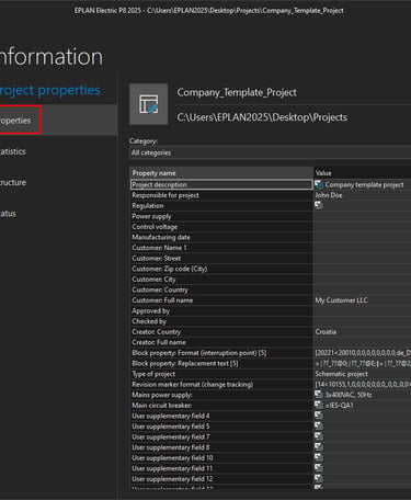 When it comes to Block properties there are two terms that need to be differentiated Block properties and Block property Formats. A Block property is a container that collects several ePLAN properties into one logical group. A Block Property Format defines the visual layout of the block property. Block properties can be used to display device tags, function texts, connection points, installation locations, etc. Block property Formats define the visual layout of the Block property, they define the order of the fields, line breaks, separators, prefixes / suffixes.