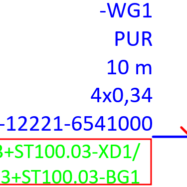 Now we will demonstrate how to create and define a Block property to display cable labels below the cable DT-s. In this example we will use cable labels which are formed in 2 parts, the cable source connection and the cable target connection.