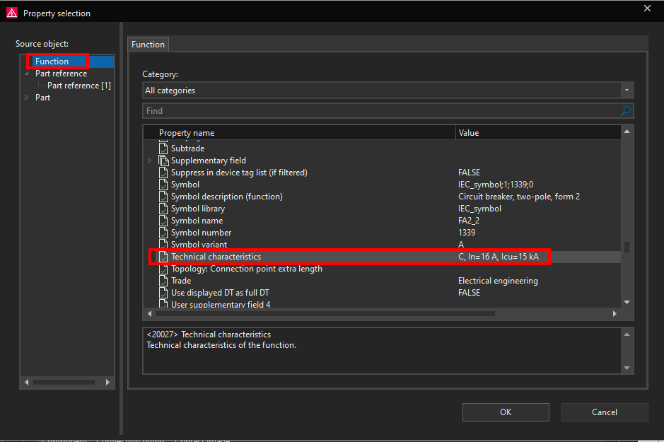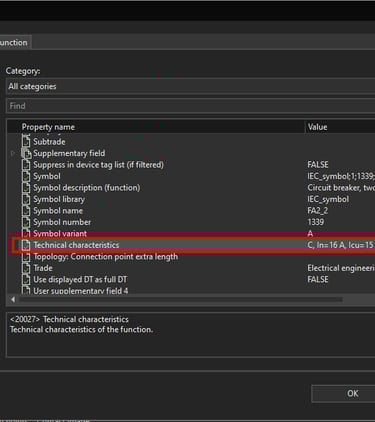 Now in the same way we will add the circuit breaker Technical characteristics property to be displayed under the circuit breaker part number.