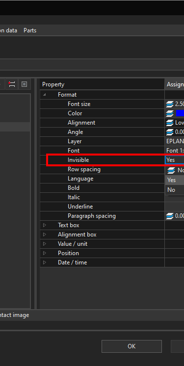 Now we can change the Symbol property Invisible Format from No to Yes.