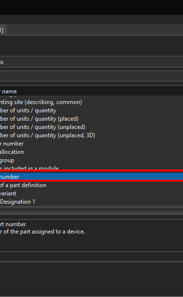 Now the Part reference [1] / Part number property will be visible in the Display tab.