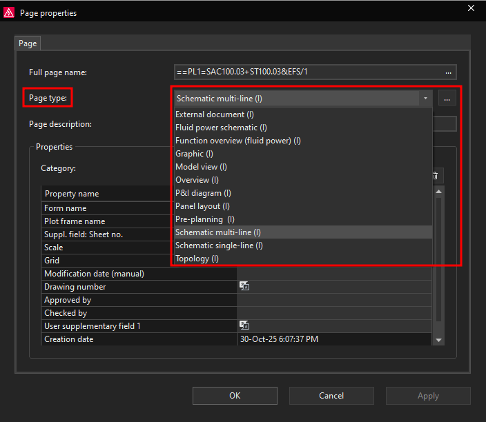 To change the page type in ePLAN right click on the page and then click on Properties.