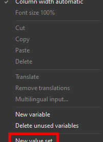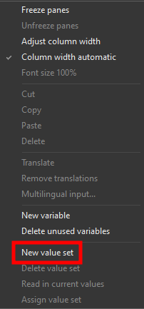 By right clicking on the empty space we can add a new value set by clicking on the New value set command.