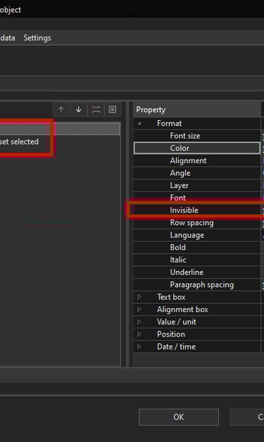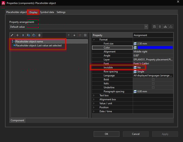 You can also change the visibility of the placeholder object properties such as name and description in the Display tab.